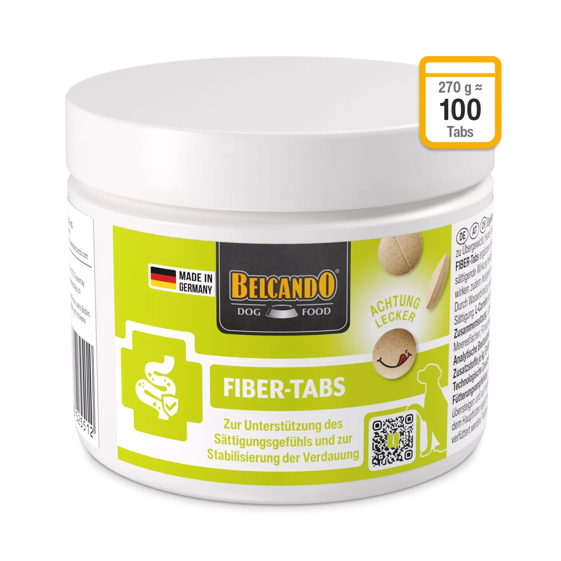 FIBER-Tabs ergänzen die Versorgung des Hundes gezielt mit einer ausgewogenen Kombination von Ballaststoffen, die für ihre regulierende Wirkung auf die Verdauung und ihre sättigende Wirkung bekannt sind.