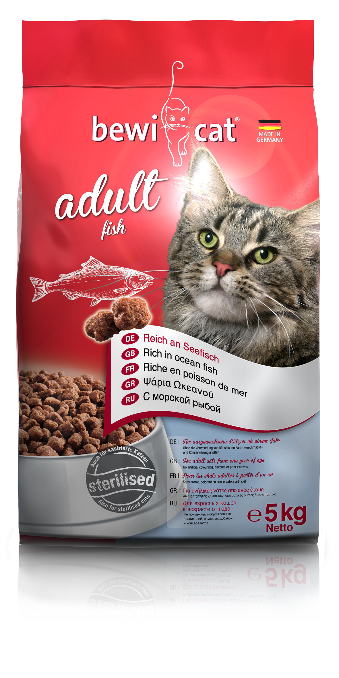 Mais, getrocknete Geflügelproteine (20 %), Weizen, Seefischmehl (14 %), Geflügelfett, hydrolysierte Geflügelleber, entzuckerte Rübenschnitzel, Natriumchlorid, Kaliumchlorid.